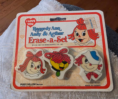 There isn't any real rhyme or reason to these, we just like saving images of strange dolls and merch we find online or at thrift stores. It's also funny to me how we start to recognize the distinct licensing clip art used and when it's been bootlegged or traced.